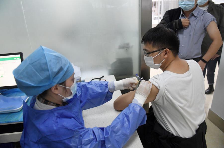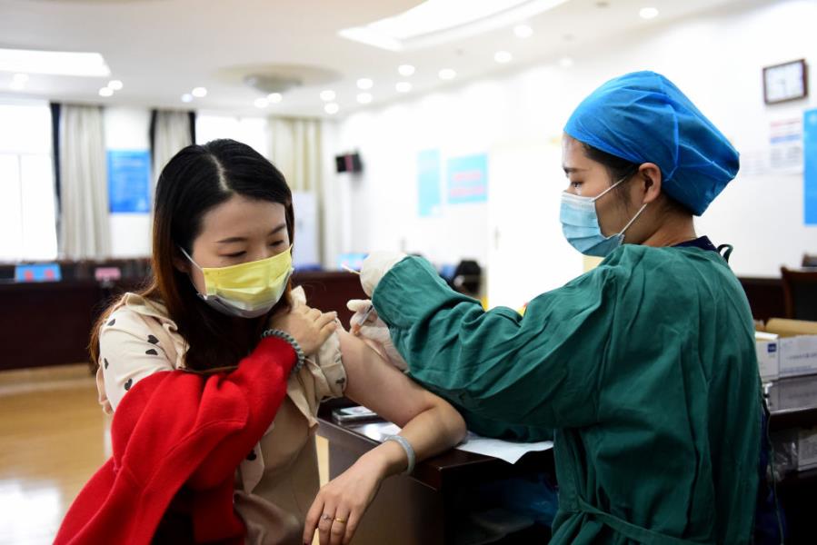 11月2日,在南宁市青秀区方园社区卫生服务中心,医务人员给居民接种新冠疫苗加强针。新华社记者 陆波岸 摄