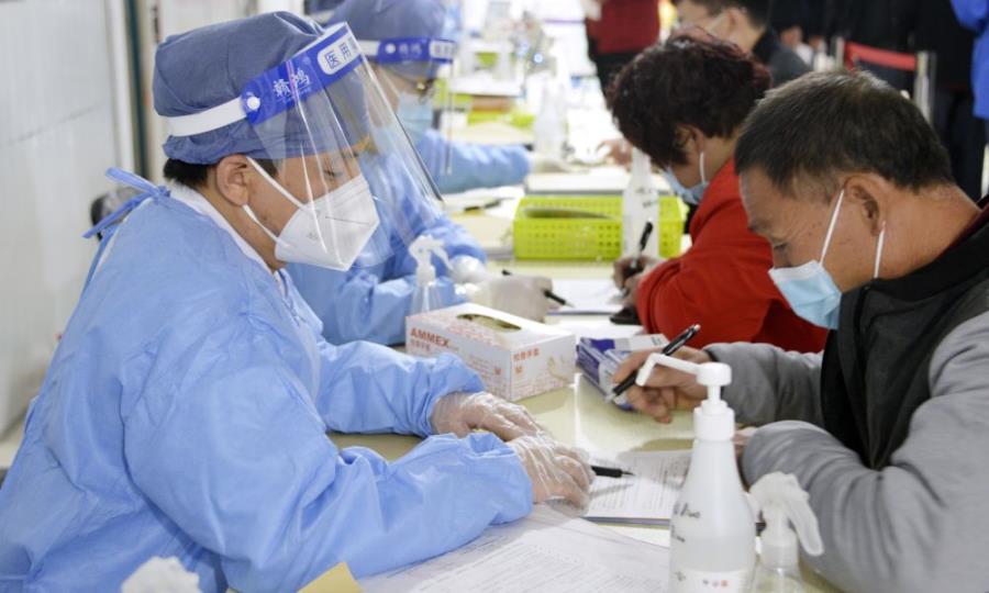10月25日,北京市大兴区旧宫镇的居民准备接种疫苗加强针。新华社记者 李欣 摄