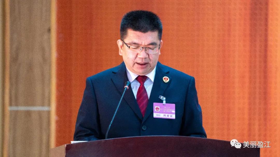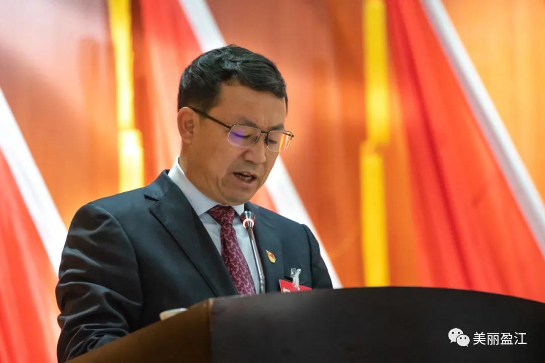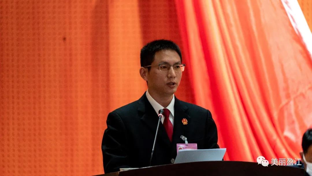 县人民法院党组书记李江润作盈江县人民法院工作报告。