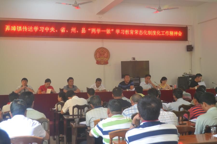 5月23日上午9点,弄璋镇在一楼大会议室召开学习例会,全镇领导干部职工,15个村支书、主任及驻村第一书记共100余人参加了会议。会上,镇党委书记武显斌同志传达了党中央、省委、州委“两学一做”学习教育常态化制度化工作座谈会精神及中央组织部和省委组织部基层党建工作重点任务推进会精神。