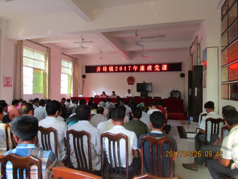 2017年5月26日上午,弄璋镇政府一楼大会议室座无虚席,全镇党员领导干部,各村支书、主任、小支部书记齐聚一堂,认真聆听镇党委书记武显斌作的廉政党课《敢担当有作为 努力实现全镇经济社会健康发展》。