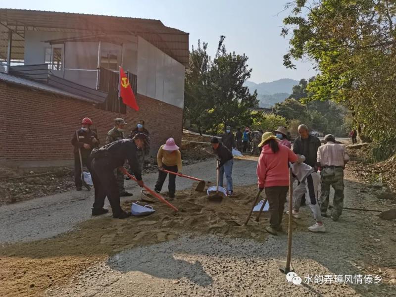 活动中,驻村工作队、村“两委”干部带领辖区党员、群众及大盈江二、三级电站、户撒河四级电站、芒面河电站、远通公司搅拌站等企业工作人员带着锄头、铲子等工具,投入拉运车辆、大型机械等设备对路面坑洼处进行填补,疏通因雨水冲刷被泥土堵塞的水沟,清除塌方、坍塌处障碍物等。志愿者们热情高涨,你追我赶、通力协作,经过一天的奋战,圆满完成道路的修缮。