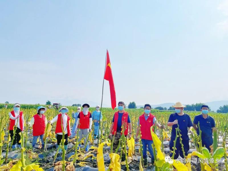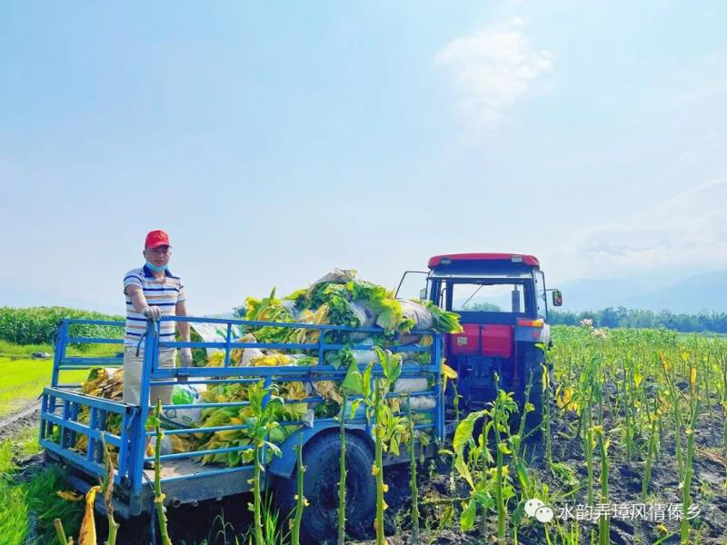 “今年雨季来得早,影响烟叶采收,不及时抢收便就亏大了,你们的帮忙真及时呀。”受助村民看着沉甸甸的烟叶一担又一担地被收到拖拉机上,脸上露出了笑容。