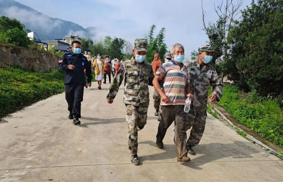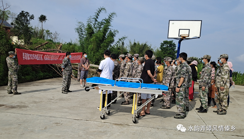 演练模拟在强降雨情况下拱腊村民小组地质灾害隐患点可能诱发泥石流、山体滑坡、山洪暴发等自然灾害,直接威胁该小组22户130人生命财产安全。接到预警后,弄璋镇立即启动应急预案,迅速组织镇、村干部、卫生院医务人员、民兵等组成救灾应急队伍赶往现场,通过广播、敲锣打鼓,相互告知等方式,通知群众迅速沿道路撤离至安置点。演练中,救灾应急队伍忙中有序救助伤员,有的搀扶长者、抱着孩子……有力、有序、有效撤离群众,并安置到安全地点,演练圆满完成。