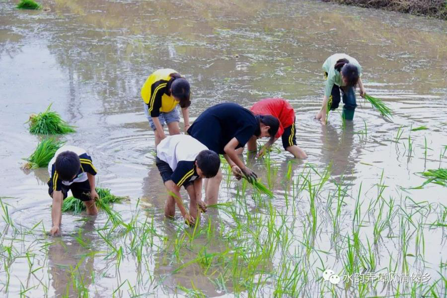 时雨及芒种,四野皆插秧。连日来,德宏州盈江县弄璋镇新时代文明实践所“拨浪鼓”志愿服务队分批次组织辖区内五、六年级学生开展“学插秧”志愿服务活动。数十名学生在老师的带领下脚踩泥土,手插秧苗,在亲近大自然的欢乐中学习农耕文化,体验劳动的辛苦与喜悦。绿意盎然的稻田、水田里“寸步难行”的孩童与背后青瓦白墙的实践基地,构成一幅美不胜收的田园画作。