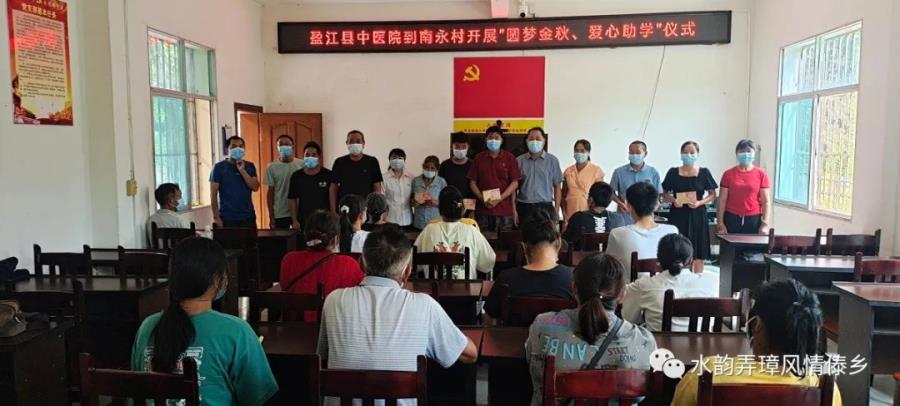 8月20日,盈江县中医院在弄璋镇南永村举行2022年“圆梦金秋,爱心助学”仪式,向21名家庭困难的学生发放助学金共计17000元。