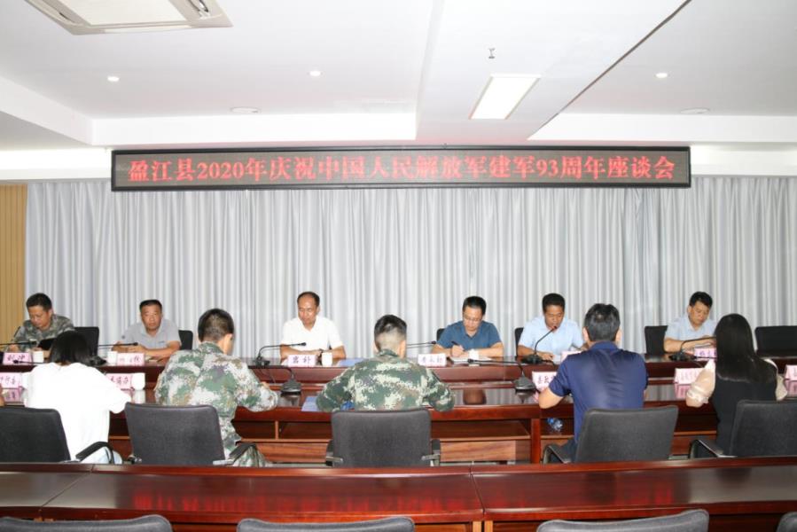 7月30日下午,县委、县人大常委会、县人民政府、县政协领导、县直各有关单位及三家常驻盈江军队单位代表,在行政中心召开了庆祝中国人民解放军建军93周年座谈会。