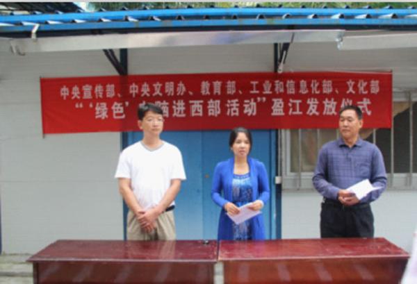 9月17日上午9时,2012“'绿色'电脑进西部”赠送仪式在盈江县委大院举行,中共盈江县委宣传部常务副部长、文明办主任龚健蓉、县教育局副局长杨利彬及相关部门领导参加了赠送仪式。