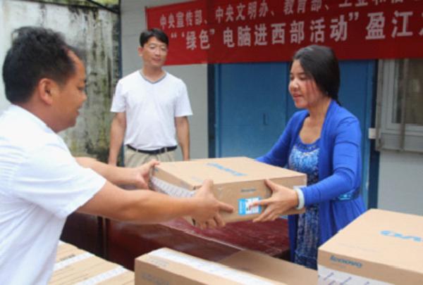 这次中央文明委向德宏地区赠送的180台“绿色”电脑中,盈江获赠30台(铜壁关中心校15台、旧城镇文化站10台、平原镇盈东社区5台)。这批电脑的及时送达,有效缓解我县中校和乡镇、社区文化站缺乏电脑的问题,“绿色”电脑的推广使用将极大地丰富我县边远地区和基层群众的精神文化生活,满足中小学生的绿色上网需求,对于加强未成年人思想道德建设和及时便捷地传播先进科学文化技术,推动边疆地区文化、科技、教育事业发展具有十分重要的意义。