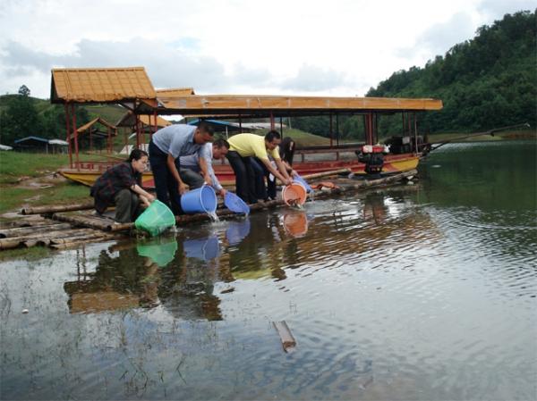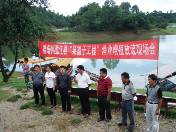 2012年7月6日下午,德宏州盈江县“菜篮子工程”渔业增殖放流现场会在山清水秀的铜壁关乡凯邦亚湖湖畔隆重举行,州、县农业局领导及相关科(股)室负责人,铜壁关乡人民政府、盈江凯邦亚湖旅游投资有限公司主要领导、相关人员及群众代表共计100余人参加会议。