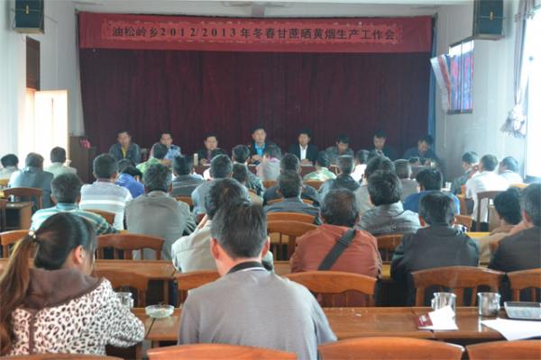 9月12日下午,油松岭乡组织召开2012/2013年甘蔗、晒黄烟生产工作会,专项安排布置冬春甘蔗及晒黄烟种植工作,乡领导干部、各村支书主任以及涉及甘蔗和晒黄烟种植的村民小组长、旧城甘蔗站长、各站所负责人共70余人参加了此次会议。会议由乡党委副书记帕安胜主持。