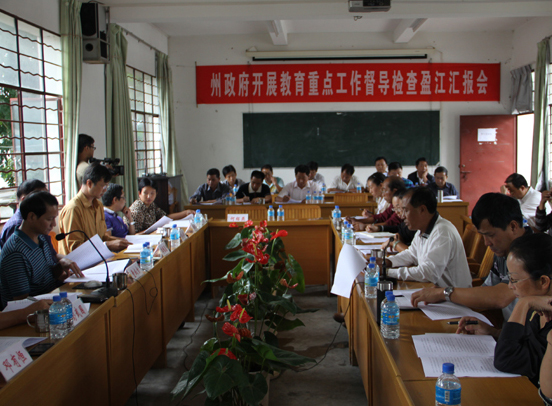 20日下午,在县教育局会议室召开了州政府教育重点工作督导检查盈江汇报会,会议由何副主席主持。