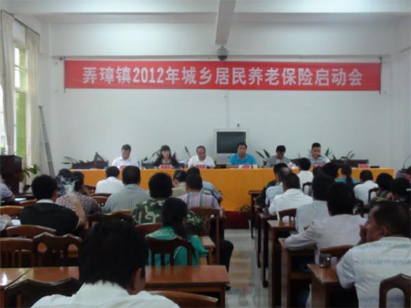 8月24日,弄璋镇召开2012年度城乡居民养老保险启动会,会议由弄璋镇政法副书记戴贤东同志主持,弄璋镇全体干部职工、各村村干参加了此次会议。