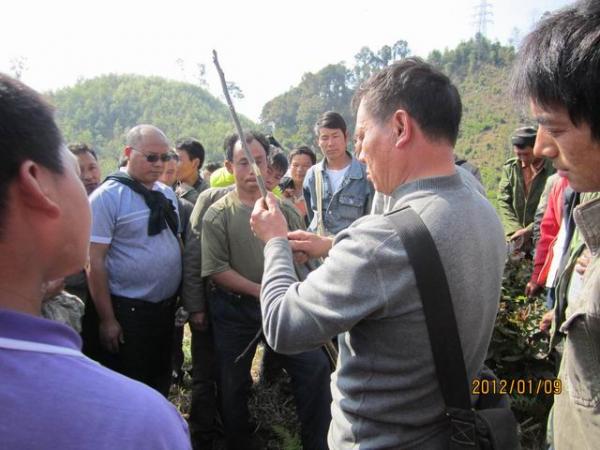 在核桃基地,技术人员手把手为群众传授核桃嫁接和管理技术,从嫁接时间、所需材料、嫁接部位选取、下刀、裹薄膜等每个细节,边示范边讲解。集中培训后,分组实验,技术人员从旁进行指导,力求所到学员均掌握嫁接技术。