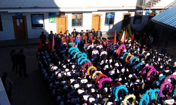 仪式最后,应征入伍青年们满载乡党委、政府的希望,亲人的嘱托,在师生们的鼓号队列下踏上他们的军旅之路。