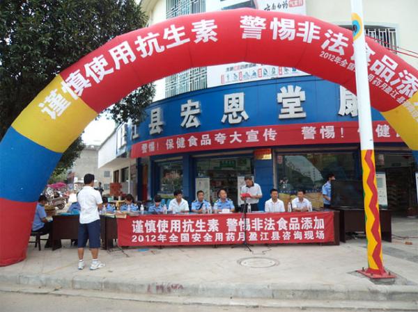 为全方位、多角度开展活动,切实做好“全国安全用药月”宣传活动,盈江县食品药品监督管理局提前部署,精心安排:一是制定活动方案,确定时间、内容和具体工作要求;二是在县城主要街道、医院、药店门口悬挂安全用药宣传横幅;三是订制安全用药实用手册1000册、印制以“谨慎使用抗生素”为主题的宣传单5000份、海报500张;四是将国家局统一制作的安全用药月公益广告及宣传片刻录成光碟,相关科普宣传材料整理装订成册,印发至全县各乡镇食品药品安全协管办及农场管委会,确保宣传活动能深入农村、社区、学校;五是协调盈江电视台集中播放国家食品药品监督管理局统一制作的“请勿滥用抗生素”、“正确认识OTC”等公益广告,营造全社会关注药品安全的浓厚氛围。