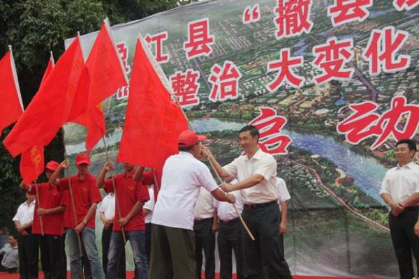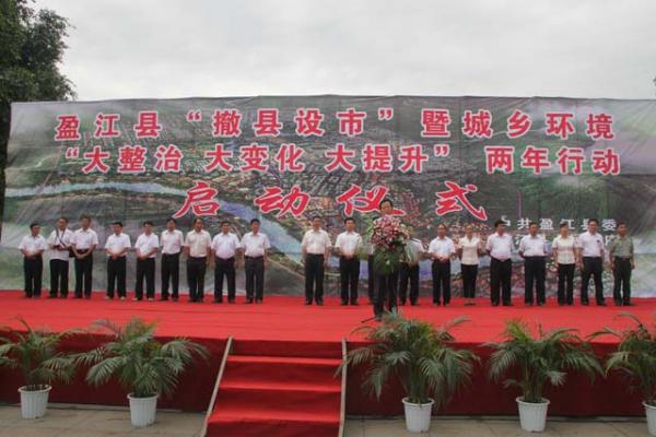 9月4日上午,盈江县干部职工、部队官兵、环卫工人、志愿者、学生、个私协会代表和各族群众3500余人相聚在大盈江广场,隆重举行盈江县“撤县设市”暨城乡环境“大整治、大变化、大提升”两年行动计划启动仪式。这是盈江县为推进“撤县设市”步伐,加快美丽富饶新盈江建设,促进盈江科学发展、和谐发展、跨越发展而举行的一次重大活动。