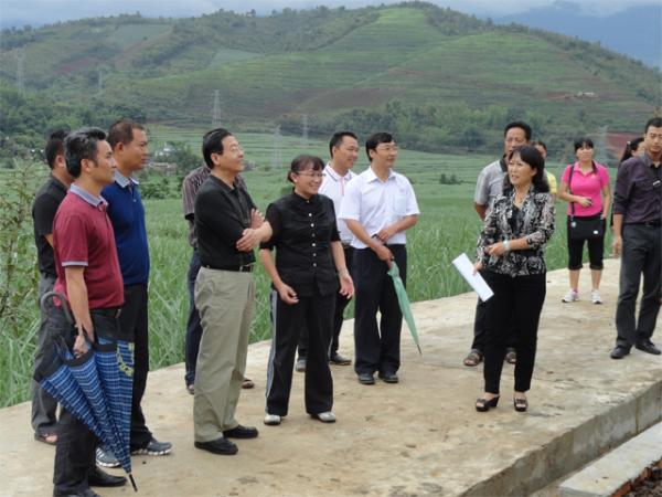 2012年6月26日上午,在州侨联侨办主席主任,盈江县人民政府副县长赵冬梅一行的陪同下,高副州长深入到“雅居乐——侨爱新村”项目建设地——平原镇勐展村大团结村民小组视察项目建设进展情况。