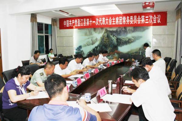 6月17日晚20时,中国共产党盈江县第十一次代表大会召开主席团常务委员会第三次会议。会议听取各代表团预选“两委”委员和出席州第六次党代会代表的预选结果报告,根据预选结果提出县委委员、候补委员、县纪委委员正式候选人建议名单和出席州第六次党代会代表正式候选人建议名单;听取各代表团讨论“两委”工作报告的决议(草案)的情况汇报。