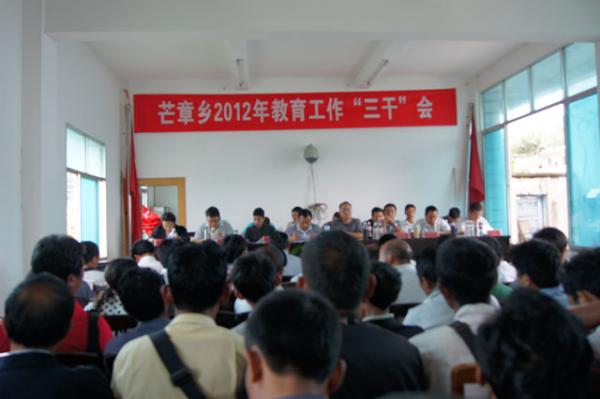 为进一步推进芒章乡教育事业蓬勃发展,抓好教育工作, 9月11日,芒章乡组织召开教育“三干”会,认真总结芒章乡在过去教育中的得失和存在的不足,并安排部署下步工作、明确努力方向;芒章乡党政领导班子、干部,县教育局领导、村两委干部、社干部、中小学教师代表等112人参加了会议,会议由芒章乡党委副书记、乡长石洪文主持。