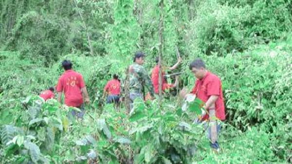 为做好此项工作,盈江县林业局与省林业厅派驻太平镇的新农村工作队一起经过认真研究,实地选点,通过县林业局林业规划调查队规划,在黄龙村翁宾村民小组建立一个205亩的薇甘菊除治省级示范点。2012年11月6日,县林业局、太平镇政府、新农村建设工作队组织了林业有害生物防治专业除治队、民兵突击队、志愿者、护林员、村民等100余人开展了“全民参与,除治薇甘菊,保护我家园”的薇甘菊除治行动启动会。启动会上,县林业局副局长刘璋,太平镇工作队队长铁伟分别对薇甘菊的危害和项目实施情况做了详细介绍,太平镇党委书记寸守在作了动员讲话。省林业厅党组成员、副厅长郭辉军,县林业局罗有兆局长一行冒雨参加了此次除治薇甘菊行动。