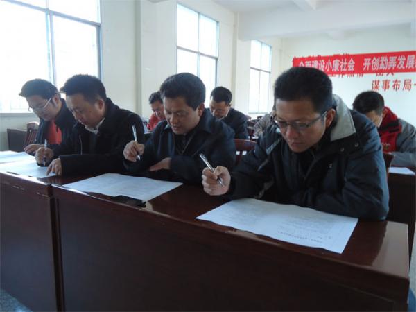 培训会于早上8:00正式开始,乡党委书记邵维常讲话并主持考试。培训会上,主要学习了公务员职业道德读本,强调公务员知识的更新与公务员作风的总要性。早上9:00开始正式考试,全体公务员及参公管理人员认真完成手中的试卷。