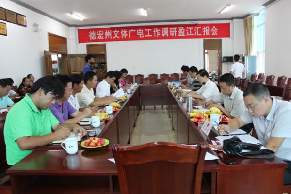 在县文化广电旅游局会议室召开了汇报会, 会上,县政府副县长张芝能汇报了我县文体广电旅游工作的情况进展。陈副州长对当前工作开展情况给予了高度的评价,希望在下一步工作抓好以下几点:一是加快推进允燕塔建设进度,各部门相互协调,攻克难关;二是允燕塔要形成整体规划,在未来的发展中以允燕塔为核心打造盈江特色旅游点;三是优化玉石产业交易,带动第三产业发展;四是加快完成统建点公共基础设施建设,五是村村通工程是民心工程、政治工程,要千方百计尽快做好此项工作。