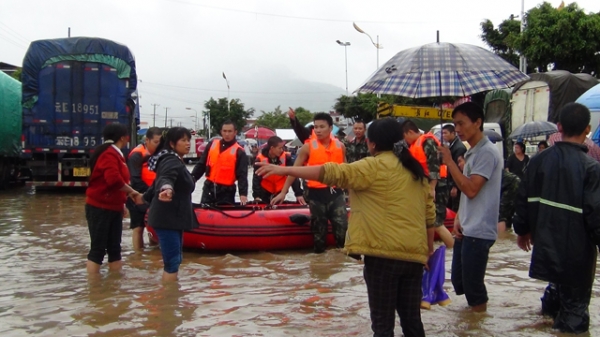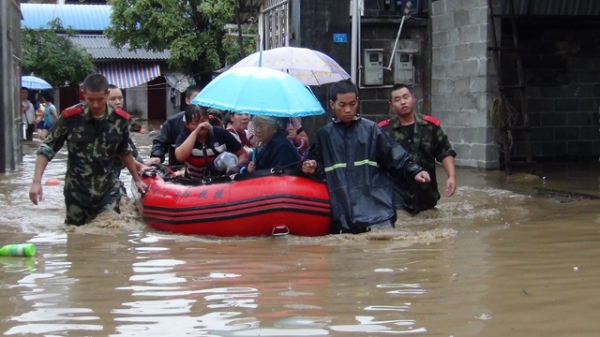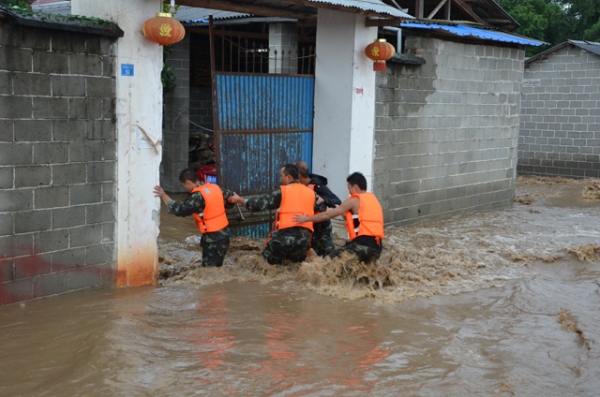 消防官兵转移被困群众