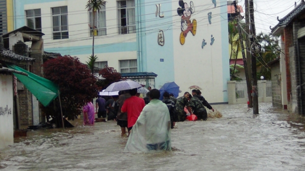 消防官兵挨家挨户搜救被困群众