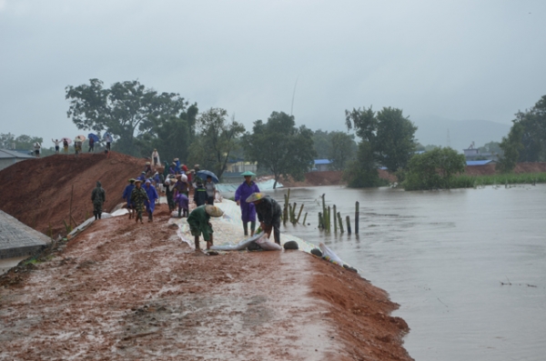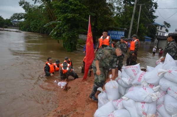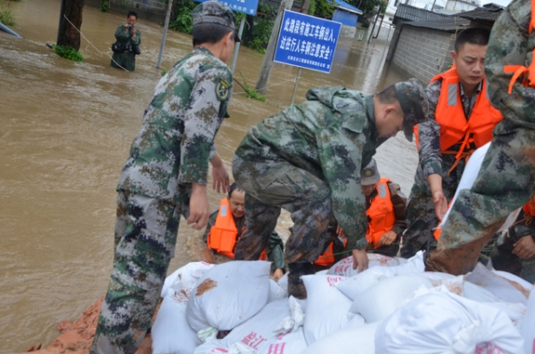 民兵参与到抢修堤坝中
