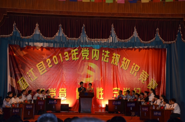 7月29日,盈江县委小礼堂内台上选手激励角逐,台下观众掌声雷动,高潮迭起,由盈江县纪委、县监察局举办的盈江县2013年“学党章、修党性、守党纪”党内法规知识竞赛正在举行。