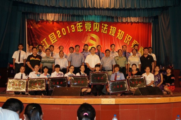本次比赛历时1个月,来自全县16个乡镇、农场和26个部门共42支代表队参赛,经前期预赛角逐,最后8支代表队脱颖而出,进入决赛。决赛现场,各代表队围绕新《中国共产党章程》、《中国共产党党内监督条例(试行)》、《中国共产党纪律处分条例》和《关于实行党风廉政建设责任制的规定》,进行了紧张而又激烈的必答题、共答题、是非题、抢答题和风险题五个环节的比赛。经过激励角逐,盈江海关斩获本次本赛的桂冠,盈江县委办、盈江工商局获得二等奖,县委党校、县司法局、县农村信用社获得三等奖;支那乡、县工业和商务局获得优秀奖。县委副书记李君川、县委常委县纪委书记杨朝友、县委常委县委组织部部长李漾湖、县委常委人武部政委何光禄、县人大常委会副主任排建华、县政协副主席方保合到场观看比赛并为获奖代表队颁奖。