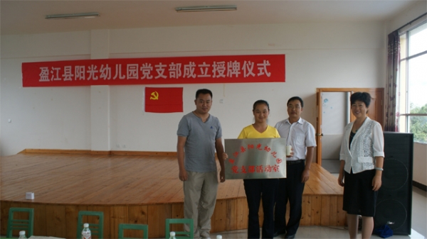 会上,教育局原基础教育股股长王明连宣读了《中国共产党盈江县教育局委员会关于同意盈江县阳光幼儿园成立支部委员会的批复》;县教育党委书记陈朝云对幼儿园成立党支部致词;县非公经济组织和社会组织党工委副书记张宏云和县教育局党委书记陈朝云向阳光幼儿园党支部授牌、授印;阳光幼儿园党支部书记陈新艳同志作表态发言;最后,县非公经济组织和社会组织党工委副书记张宏云作了重要讲话。