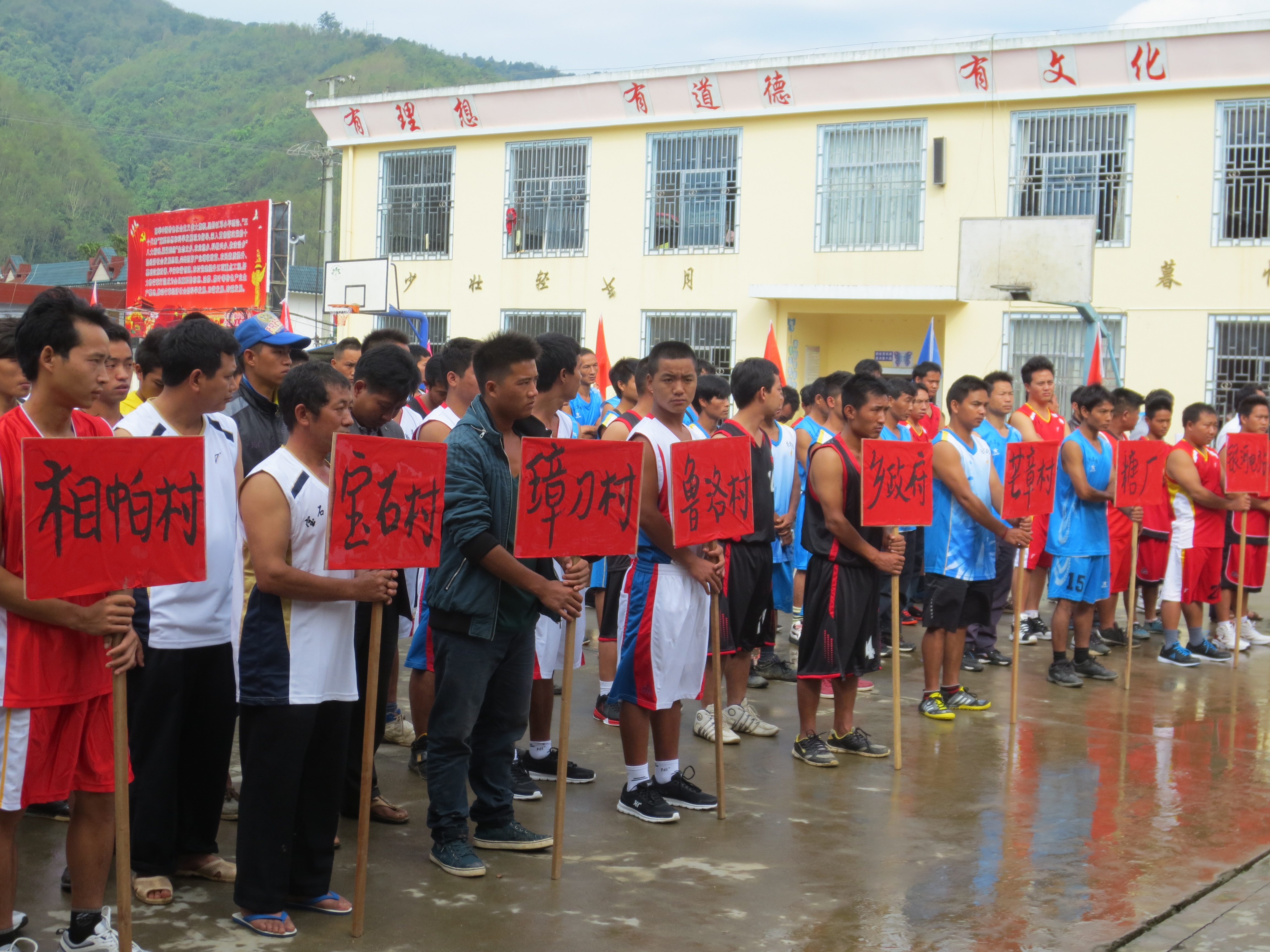 2013年9月12日上午10点,在飞扬的彩旗和震耳欲聋的鞭炮声中,芒章乡第四届“团结杯”篮球友谊赛启动仪式在芒章中心小学举行。