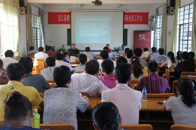 2013年9月13日,盈江县教育局教科中心组织召开了盈江县教育局教科中心教研、电教、师训业务工作会。教育局党委书记陈朝云同志,教科中心全体人员,全县中小学、幼儿园的教务主任、电教员和师训员共90余人参加了会议。