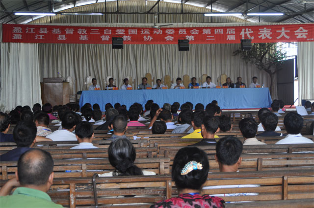 2013年9月23至24日,为期两天的盈江县第四届基督教三自爱国会和基督教协会第二届代表会在莲花山锡安教堂隆重召开。来自全县15个乡镇的代表共计250人参加了会议。州委统战部、州民宗局、县委统战部、县民宗局等部门相关领导应邀参加会议。