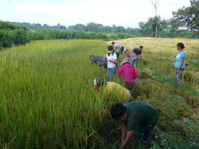 自5月份与挂钩村开展了增见识、促交流的栽秧活动以来,为继续深入开展好“四群”教育“三进三同”活动, 2013年9月23日,盈江县食品药品监督管理局全局干部秉着学习态度,再次深入油松岭乡椿头塘村兴和村民小组,在社干寸待举的带领下,与挂钩村开展割谷子活动。
