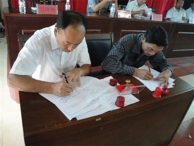最后,乡科技副乡长李恩胜宣读了《新城乡人民政府关于兑现2012/2013年甘蔗、晒黄烟生产奖励的通知》,兑现了2012/2013年甘蔗种植奖励,并与各村委会签订了2014年甘蔗及晒黄烟种植目标责任书。
