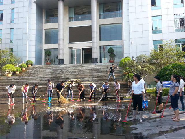 2013年10月12日清晨,全院青年干警手拿扫帚、抹布等工具,开始了一天的大扫除活动。考虑到雨季刚过,院内审判大楼、立案大厅及大法庭前的石台阶由于雨水的冲刷长出了青苔,有可能导致来访群众及工作人员不小心滑倒。为消除这些安全隐患,大家纷纷拿起扫帚、水管冲洗起这些台阶。烈日下干警们分工合作,热情不减。经过一整天的辛勤劳动,原本已经变黑的石台阶焕然一新,单位里里外外也被打扫得干干净净。