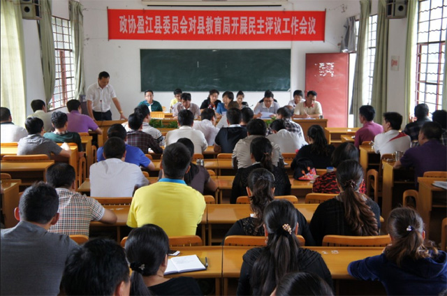 根据政协盈江县委员会的工作部署,10月23日下午,县政协副主席周湛禄、副主席帕安仁等政协民主评议视察调研组人员对教育局开展了民主评议工作。根据工作要求,盈江县教育局高度重视,安排部署,提前做好了迎接政协民主评议测评的各项准备工作。本次民主评议由县政协抽取教育系统10所学校负责人和教育局六十多名干部职工共80多人参加了本次民主评议工作会议。