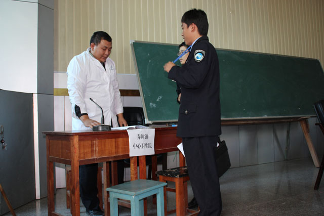 随后食品药品监督管理局职工以小品的形式,向各参会领导及协管员展示药品安全事件及食品安全事件发生时的应急处置办法。