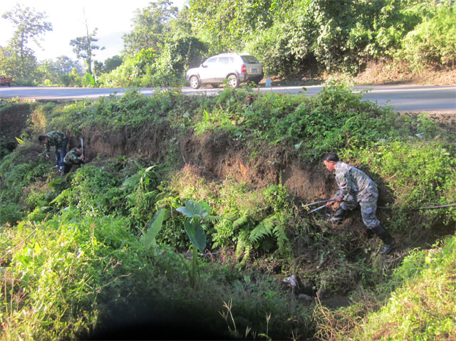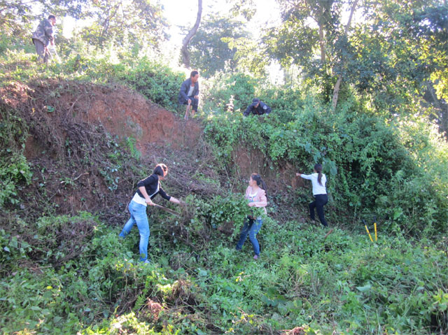 2013年11月13日,那邦镇机关站所的党员干部联合辖区内的全体护林员带头开展了一次清理薇甘菊的生态治理行动,为全镇下一步即将开展的大规模清理活动打响了头炮。清理活动定在薇甘菊生长繁茂的那邦村王家寨周围,整个清理活动持续了一上午,大家干劲十足,有的手拿景颇砍刀,有的使用花木修理刀,有的背着药物喷灌器,对目标范围内的大片薇甘菊进行了彻底的清理。