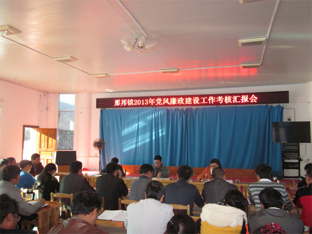 2013年11月25日,盈江县党风廉政考核小组对那邦镇2013年党风廉政建设工作进行全面考核。那邦镇党政领导班子、镇机关站所负责人、村“两委”成员、村务监督委员会主任及部分政协委员、人大代表、党外人士代表共40余人参加了会议。