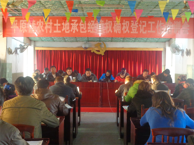 2014年1月13日上午,平原镇召开农村土地承包经营权确权培训工作会议,参会的有镇领导干部、村(居)委会支书、主任共计140人。