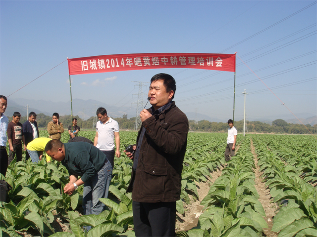 1月22日下午,旧城镇在旧城村沙坡村民小组田间召开2014年度晒黄烟中耕管理技术培训现场会。旧城镇各村民小组村、社干部及部分村民、镇双挂人员共计100余人参加了会议。