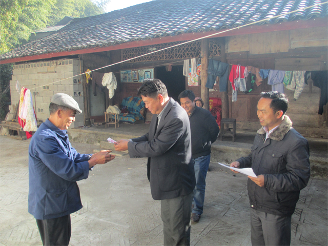 2014年春节将至,为让困难群众切实感受到党和政府的温暖,确保全乡人民群众度过一个幸福快乐、温馨祥和的新春佳节。1月23至27日,苏典傈僳族乡党政领导班子组织开展了春节前走访慰问活动,为孤寡老人、困难党员、老党员、五保户、残疾户、特困群众、困难职工等送去新春的祝福和慰问金。