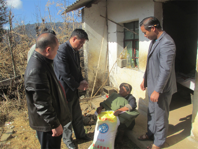 乡党委、政府为扩大救助覆盖面,同时避免重复救助,制订了分类救助、分村组走访的慰问方案。乡党政领导班子分村包片,及时将慰问金和慰问品送到困难群众手中。