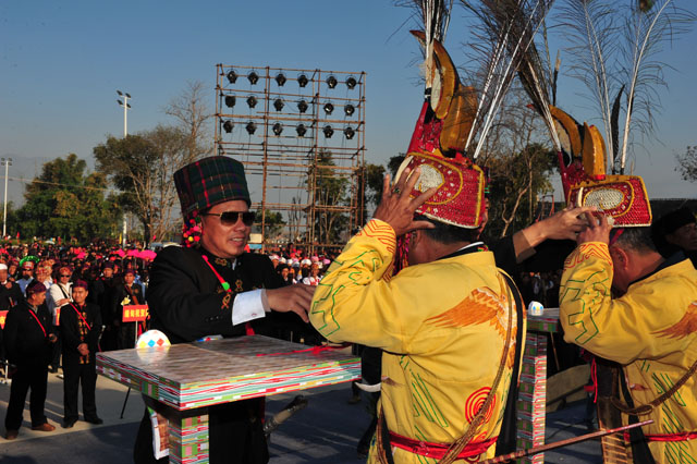 2014年2月21日至23日,盈江县景颇族目瑙纵歌盛会在县城允燕山举行。来自国内外嘉宾、全县各族群众共度喜庆佳节。