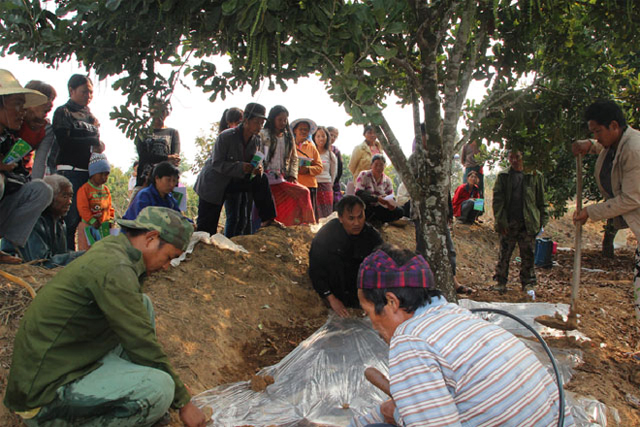 3月6日,盈江县委宣传部结合开展党的群众路线教育实践活动,组织林业部门技术员到太平镇上帮瓦小组开展澳洲坚果施肥、浇水、病虫害防治培训。