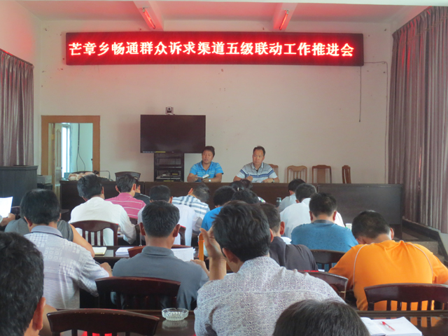 2014年4月24日下午,芒章乡召开畅通群众诉求渠道五级联动工作推进会。会议分析总结了芒章乡前一阶段“五级联动”工作开展情况,对下一阶段的“五级联动”工作的重点进行了安排部署。全乡领导干部,各村支书、主任、村务监督委员会主任,共计62人参加会议。